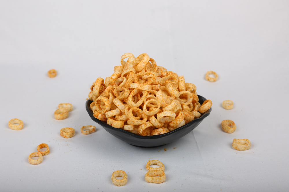 Rings – Flavoured finger size snacks for kids to adults blended in pudina/Manchurian/tomato seasoning.